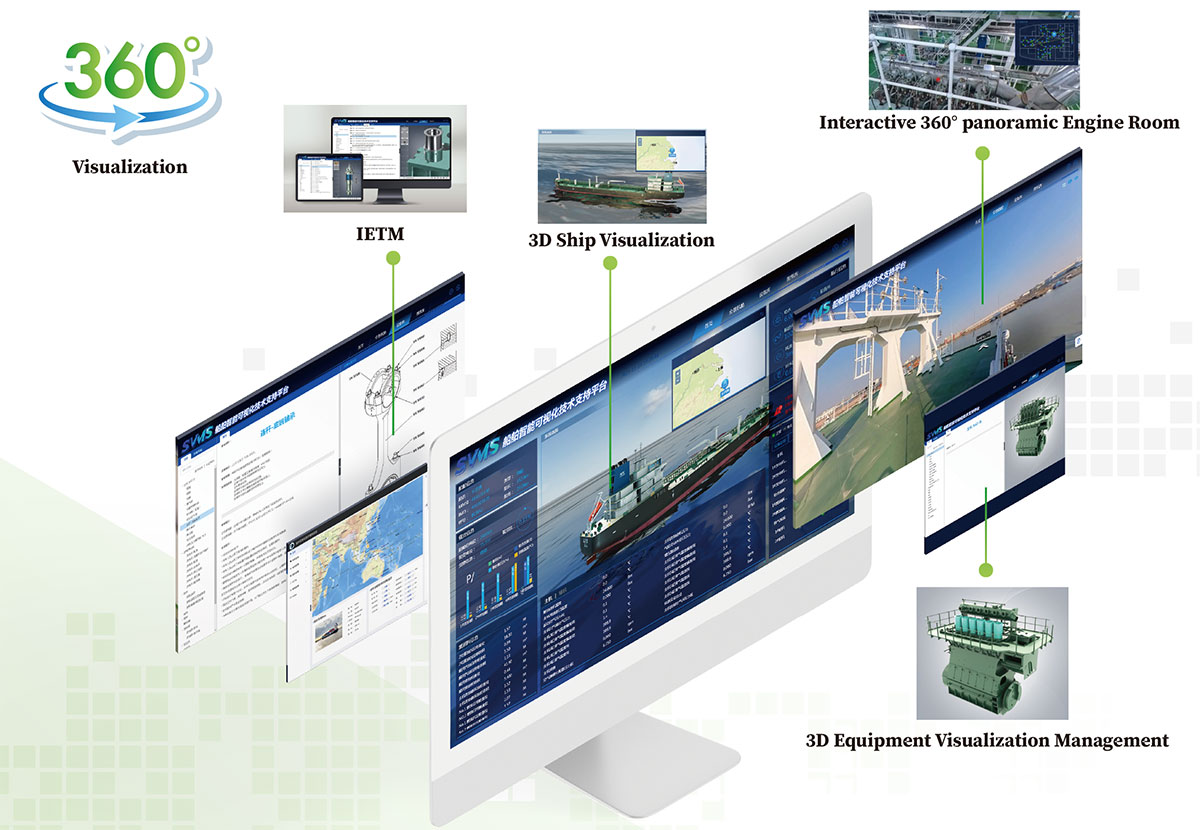 The system uses the latest lightweight design to reconstruct the ship’s shape, structure, engine room layout, core equipment, piping arrangement, installation information, and other elements, and based on the real-time data acquired by the data acquisition system, it carries out three-dimensional visualized operation monitoring of the ship and equipment. The system also adopts a 360-degree panoramic roaming mode for personnel to visually check the ship's every corner without a dead angle and to locate and observe the equipment from the shore base. Also, combined with real-time CCTV video monitoring, the system enables a quick check into the exterior of the ship's equipment as well as its current or historical operating data. Moreover, the system can conduct interactive three-dimensional visualized dynamic dismantling of core equipment. We also provide hand-held IETM interactive electronic technical manuals, teaching and training for the crew's self-study projects, guidance for operation and maintenance, and prompts and warnings for all the inspection requirements of the classification society and the maritime safety authorities to make the crews and managing personnel’s operation, maintenance and management more efficient and intuitive. The system can also perform big data analysis based on the operation data and establish mathematical models for equipment failure warnings.